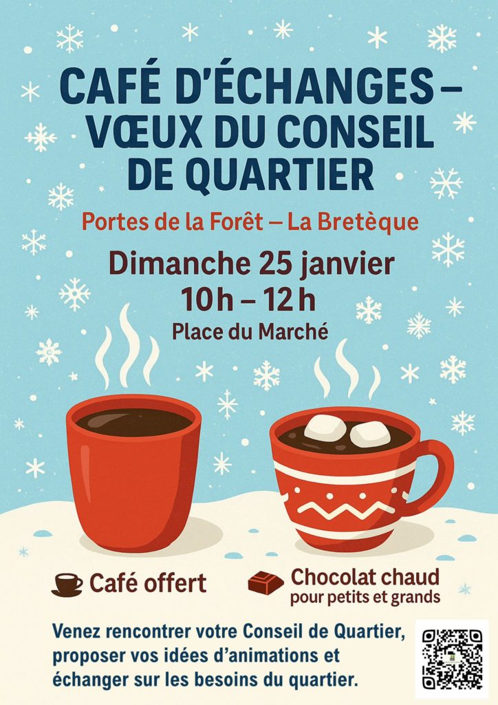 Le conseil de quartier des Portes de la Forêt – La Bretèque vous propose un café d’échanges le dimanche 25 janvier de 10h à 12h.